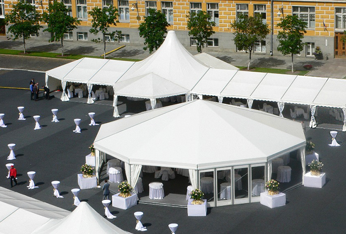 我國篷房技術(shù)引進于歐洲,很多篷房產(chǎn)品采用歐式造型,如多邊形歐式篷房。而多邊形篷房中又包括了很多種類,如六邊形歐式篷房、八邊形歐式篷房、十邊形甚至是邊數(shù)更多的多邊形歐式篷房產(chǎn)品。
