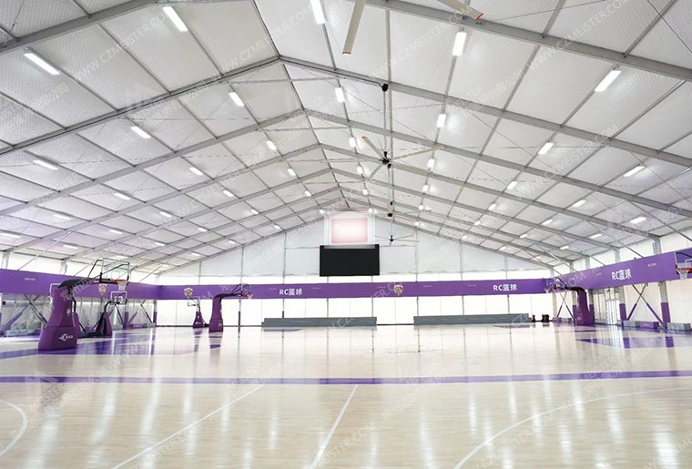 大型籃球場篷房通常擁有寬敞的空間和籃球設(shè)施,從高標準的籃球架到燈光設(shè)備,再到舒適的地板和座椅,每一個細節(jié)都為籃球愛好者提供了一個舒適的比賽和觀賽體驗。