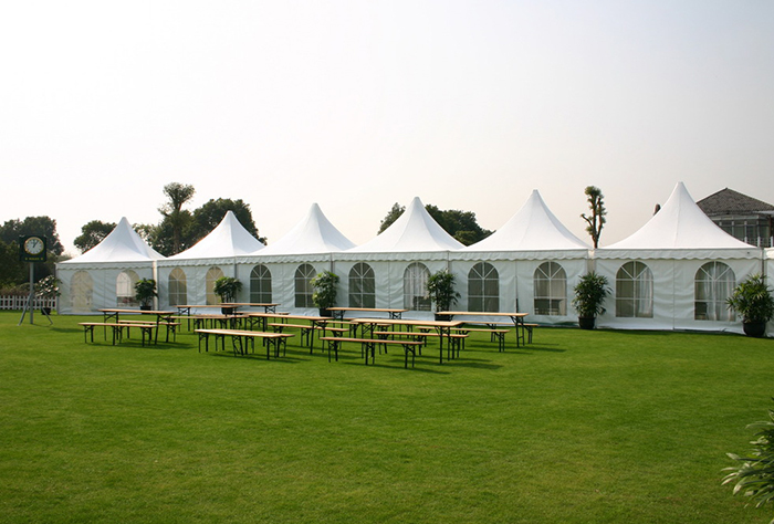 尖頂活動篷房造型多變,款式別致,具有臨時性、靈活性以及可移動性等特點。安裝過程快捷簡便,可單獨使用,也可以多個數(shù)量或不同尺寸進行組合,以更好的滿足不同場合不同活動的需求。