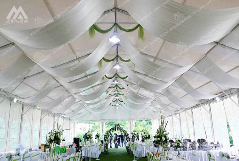 歐式婚禮大棚采用優(yōu)質(zhì)的鋁合金作為篷房框架,雙面涂層PVC篷布作為頂布和圍布,有很好的安全性,能夠保障婚禮活動在多種天氣條件下都能輕松應(yīng)對。