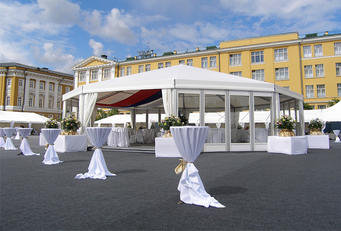 我國篷房技術(shù)引進于歐洲,很多篷房產(chǎn)品采用歐式造型,如多邊形歐式篷房。而多邊形篷房中又包括了很多種類,如六邊形歐式篷房、八邊形歐式篷房、十邊形甚至是邊數(shù)更多的多邊形歐式篷房產(chǎn)品。