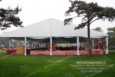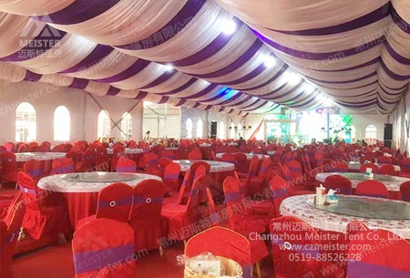 這是一組跨度20米的大型婚慶篷房,如果您有特殊需求,邁斯特也可以提供定制服務,設計出專屬您的婚禮婚慶篷房~