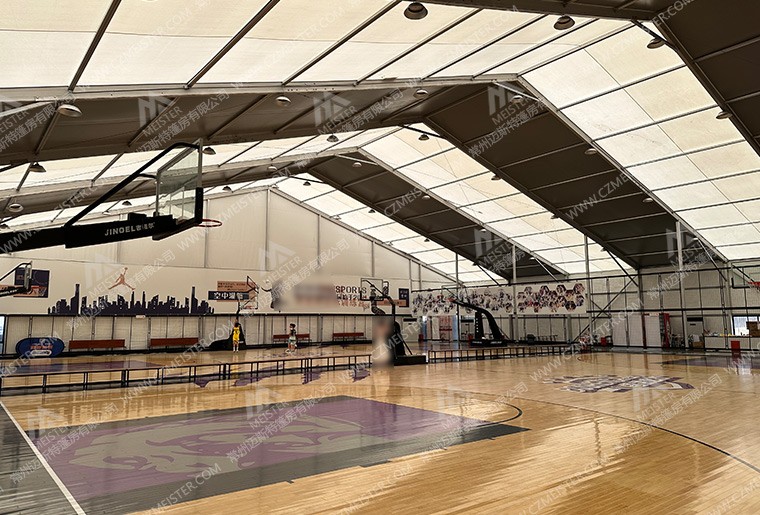 大型籃球場篷房通常擁有寬敞的空間和籃球設(shè)施,從高標準的籃球架到燈光設(shè)備,再到舒適的地板和座椅,每一個細節(jié)都為籃球愛好者提供了一個舒適的比賽和觀賽體驗。