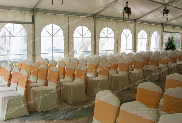 邁斯特篷房公司提供的婚慶篷房有多種規(guī)格、邊高和形狀,用戶可根據(jù)自身需求選擇合適的篷房。跨度可以是3-50m,邊高是3m、4m、5m、6m,間距是3m或5m的倍數(shù)無限延伸,大型婚禮宴會篷房可以容納500人以上。
