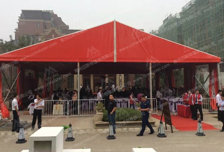 開發(fā)商們之所以鐘愛這種臨時開盤篷房,一是這種臨時性的活動需要在合適的場所開辦,篷房的搭建不受場地的限制,一般沙地、瀝青地面、水泥地都能輕松搭建。二是開盤活動周期短,篷房搭建周期短,邁斯特篷房公司專業(yè)團(tuán)隊搭建甚至可以達(dá)到每天一千平米的速度,加上前期審批手續(xù)簡單,可以做到快速投入使用。同時也大大減少經(jīng)濟(jì)成本。
