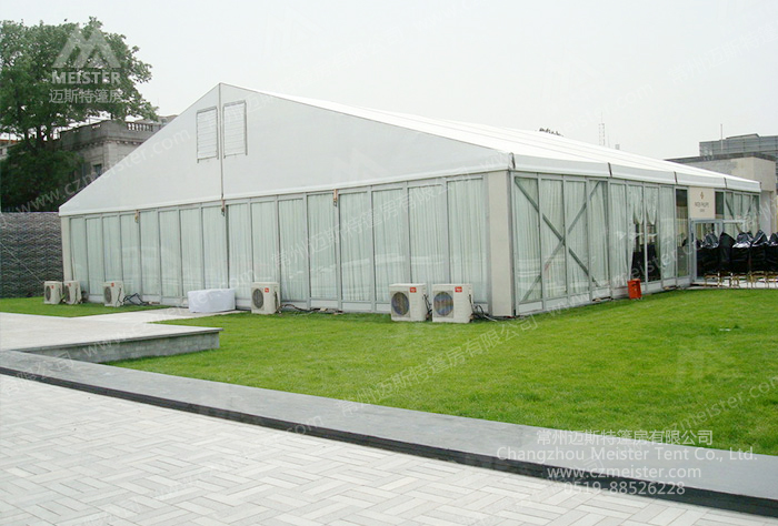 戶外活動篷房尺寸多變,跨度可以選擇3-50m不等,長度可以按3m或5m的倍數(shù)無限延伸,因此規(guī)模再大的篷房需求也可以得到滿足。邁斯特篷房制造廠家研發(fā)生產(chǎn)的戶外臨時活動帳篷時尚美觀、造型多變、搭建周期短,能夠使活動方在最短的時間內(nèi)投入使用。產(chǎn)品所有框架型材采用優(yōu)質(zhì)鋁合金,篷布則選用進(jìn)口雙面涂層PVC布,具有安全穩(wěn)固、防曬阻燃等性能,有效保障戶外活動即便在惡劣天氣情況下也能如期舉辦。