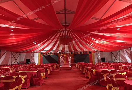 邁斯特篷房廠家以其多年的篷房生產(chǎn)搭配經(jīng)驗(yàn),生產(chǎn)或搭配的戶外婚禮帳篷可以使婚禮活動(dòng)事半功倍,主要得益于邁斯特篷房廠家采用了優(yōu)質(zhì)鋁合金型材作為框架的材質(zhì),性能使用壽命不低于20年,雙面涂層PVC布結(jié)實(shí)耐用,搭配一些燈飾布幔等裝飾物使得整體結(jié)構(gòu)更加唯美別致。根據(jù)需求自由搭配,為你展現(xiàn)不一樣的婚禮帳篷。