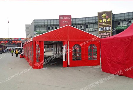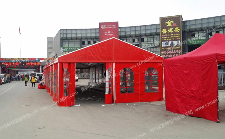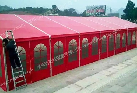 邁斯特篷房廠家生產(chǎn)的喜宴篷房采用鋁合金作為框架搭配雙面涂層PVC布具備防火阻燃、抗風(fēng)防水、抗撕拉、防紫外線等性能,紅色搭配不會顯得突兀,造型百搭,簡單大方的流線條深受新老客戶的喜愛。篷房跨度3-50m,長度可按3或5m的倍數(shù)無限延伸,如果有特殊尺寸需求,還可以根據(jù)客戶的要求量身定做。若有這方面的需求可以聯(lián)系邁斯特篷房廠家相關(guān)人員。