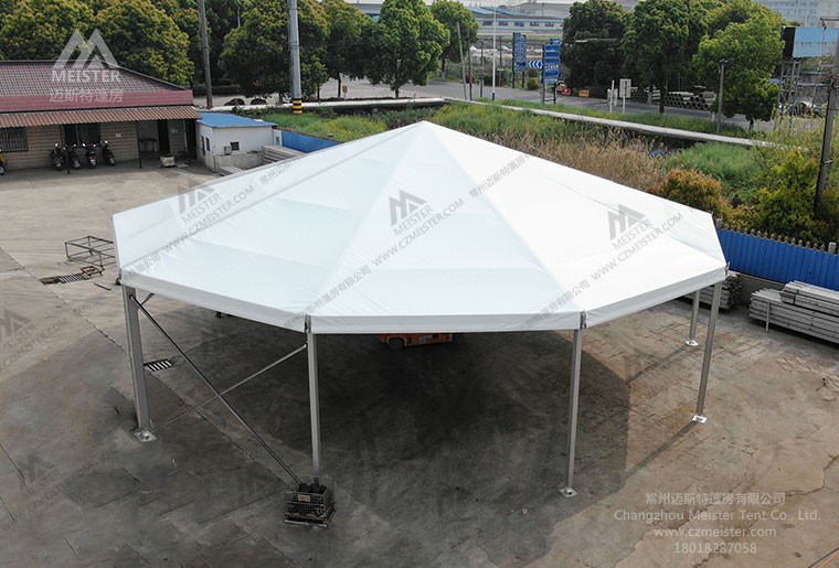 十邊形篷房是一款有十條邊的尖頂篷房,是屬于常見的多邊形篷房中的一種。歐式的風格,造型新穎、十分美觀,可以搭配常規(guī)的人字型篷房等進行組合使用,在各活動中能夠成為吸引眼球的一道風景線。