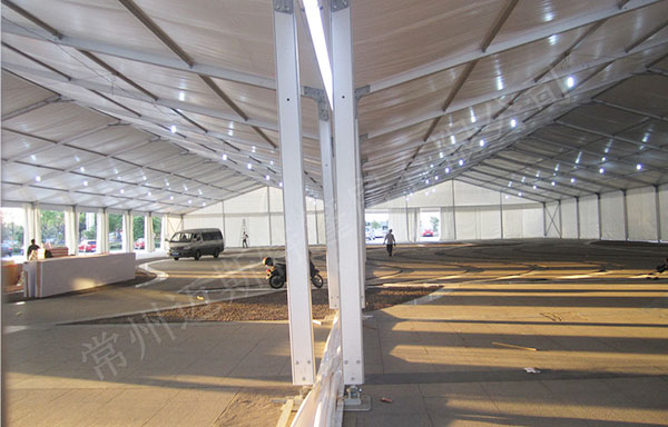 會(huì)展篷房的固定方式有三種:1.地釘(適合草地、沙地、泥地等地面);2.膨脹螺絲(適合水泥地面);3.承重盤(適合瓷磚、大理石等不可破壞的地面)。